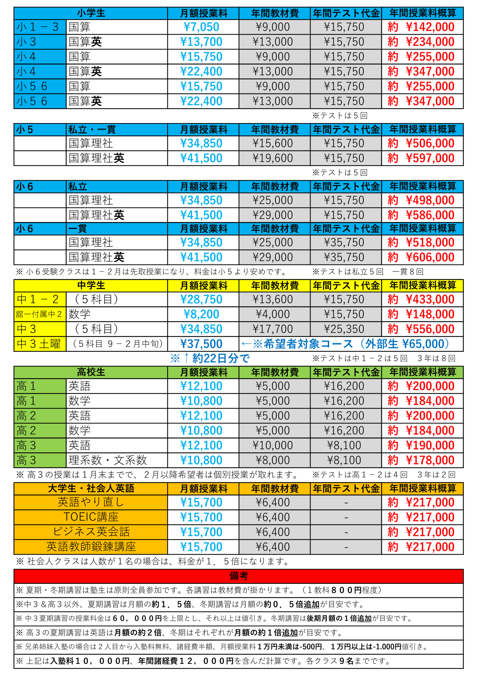 ※下館一附属中1年クラスは英語・数学がそれぞれ80分です。